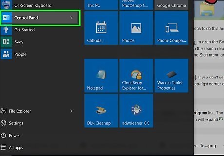 Open the Control Panel. The steps to do this are different depending on your version of Windows: Windows 10: Press ⊞ Win+S to open the Search bar, type control panel, and then click Control Panel in the search results. Windows 8 and earlier: Click the Start menu and select Control Panel.