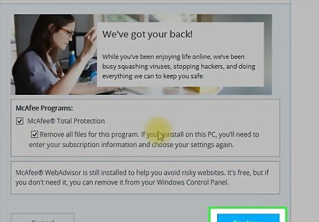 Click Continue. It's at the bottom-right corner. The application will now uninstall. When the process is complete, you'll see a message that says "Software Removed." If these steps did not remove McAfee from your PC, see this method.