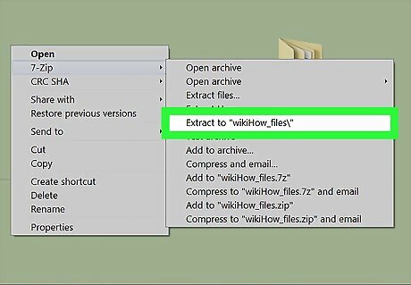 Click Extract to (Folder Name). This tells 7-Zip to create a new folder (named after the .tgz file) in the current directory. The contents of the file will now extract to the selected location. If the only file that appears ends in .TAR, double-click it to extract the remaining files. To select a different location, choose Extract Files… instead, then choose a location.