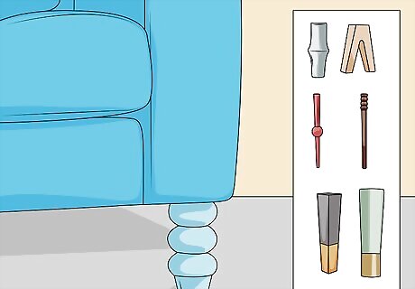 Switch out your furniture legs for a subtle change. Instead of making sweeping changes to the look of your living room, make subtle ones. Try replacing the basic legs that come standard on your coffee table or sofa with a set that offers a little more flair. Certain businesses now specialize in designing eye-catching furniture legs that can lend a little character to your tired pieces without the need to completely redecorate. Swedish company Prettypegs is the industry leader of tricked-out IKEA legs, though you can also get them handmade in private web shops like those on Etsy.