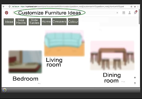 Add one-of-a-kind details for a unique look. Inject a little of your own personality into less-than-exhilarating decor. Come up with a list of fun ideas about how to represent yourself through your furnishings. Be on the lookout for unconventional materials you could use to create custom pieces that really make a statement. For instance, those with an interest in nautical imagery could embellish wall hangings with ropes tied into sailor’s knots, or you could resurface your MALM desk with a mosaic of paint spatters if you’re an artist. Have fun and let your creativity take over! Personalizing your IKEA purchases doesn’t have to be an elaborate process. It could be as straightforward as adding a border, sewing on fabric accents or changing out small details like buttons, cushions or trim. If you’re looking to upgrade a bookcase, add wallpaper or contact paper on the back support for a fun twist. Websites like Pinterest contain a wealth of ideas for how to customize furniture and craft new features.