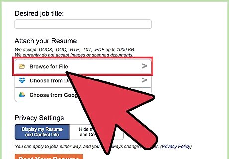 To attach your resume click the "Browse for File" button.