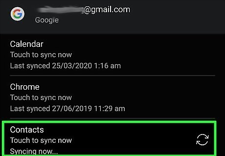 Tap the Contacts switch to turn it on. It will be highlighted in color when it is on. If the switch is already on, you don't need to do anything here. This will make sure your Google contacts automatically sync across devices. For instance, any contacts added on your phone can be accessed from your tablet or computer.