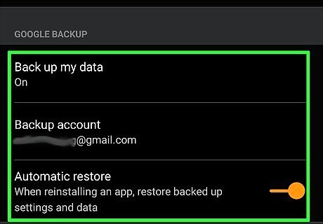 Review your Google account options. Check the following: Make sure backup is on. Tap Back up my data and make sure the switch is on. Select Backup account and make sure your Google account is listed. If it's not, tap Add account and sign in to your Google account. Tap Google Account and check your backup settings. Make sure Back up to Google Drive is on. Check the most recent backup, and click Back up now to refresh.