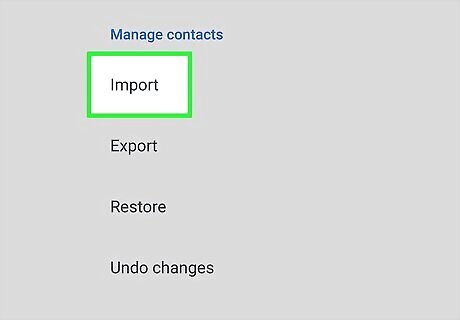 Tap Import. This is at the bottom under "Manage contacts".