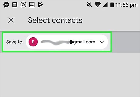 Set Google as your contact app's default storage. This will automatically save contacts to Google that are added from the default contact app. Do the following: Open the default Contacts app on your phone. Look for an address book icon or one that looks like a person's head and shoulders on your home screen or app menu. Go to the storage settings. Tap the options menu icon and select Settings. It may be under Manage Contacts instead depending on your phone. Select Google as the default storage location.