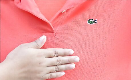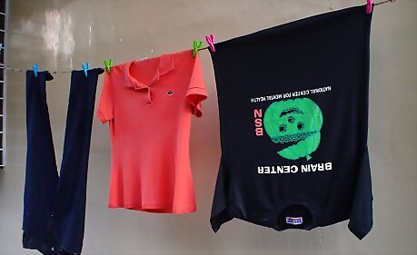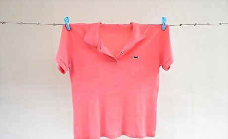 Hang cotton or blend cut-&-sewn shirts (those with cuffs and collars) upright with the clothespins at the side seams. This allows them to dry quickly without shoulder marks or wrinkles. Alternatively, a you could hang shirts and t-shirts out on the line on a coathanger. This means no pegs and no marks and minimal ironing. Or you could try hanging T shirts at the armpits; peg marks won't be seen here.