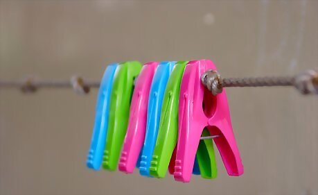 Alternatively, springless clothes pegs made of hardwood or plastic also hold laundry securely.[[Image:Use a Clothesline Step 11.jpg}}