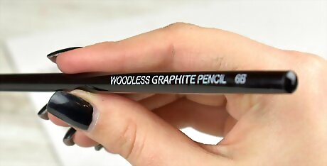 Pick a graphite pencil for smaller details and strokes. Like charcoal sticks, graphite sticks have broad sides and a flat edge on each end. If you need to add smaller details, get a graphite pencil. Like graphite sticks, graphite pencils list the density of the material on the side of the pencil.Variation: Some graphite sticks have a cone-shaped tip similar to a pencil, but the tip will wear down rather quickly. Treat these sticks the same way that you treat rectangular sticks and use the sharp tip to make small marks instead of long lines. As you use the stick, the size and shape of this point will change as the tip wears down. Graphite pencils aren’t technically graphite sticks, but most artists use a combination of sticks and pencils for more detailed drawings. Sharpen graphite pencils the same way that you sharpen standard pencils.