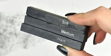 Get a variety of graphite sticks to achieve light and dark shades. Graphite sticks come in a variety of different densities. The softer the graphite is, the darker the mark it will make. If you want to achieve a wide range of shades, get a pack of graphite sticks in different densities. When using graphite sticks, read the embossed letters on the side of the stick to determine how dark it is. The scale for graphite density can be a little confusing. 9H is the lightest shade while 9B is the darkest. The numbers go down from 9H until they hit F, HB, and B before going back up again. For reference, HB is considered the “middle,” and it’s the same density as a #2 pencil.