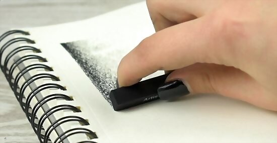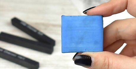 Use a kneaded eraser to remove marks and add texture. A kneaded eraser is a soft, putty-like material that will erase and soften graphite marks. You can tear it into smaller pieces and soften it in your hand to clean the eraser. To use your kneaded eraser, rub it gently against any graphite mark that you’ve made to soften the mark or remove it completely. Kneaded erasers are often called “gum” or “gummy” erasers. They will also work to erase charcoal and colored pencil.