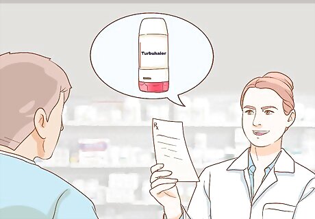 Get a prescription and pick up your Turbuhaler at a pharmacy. Once your doctor hands you a prescription for a Turbuhaler, call ahead to your local pharmacy and ask if they can fill the prescription. Go to the pharmacy when your prescription is ready for pickup and get your new Turbuhaler. Do not let anyone else use your Turbuhaler, even if they have similar symptoms, as it can be harmful if they have not been prescribed this medication. Ask the pharmacist to show you where to find the expiration date and how to tell if the inhaler is empty.