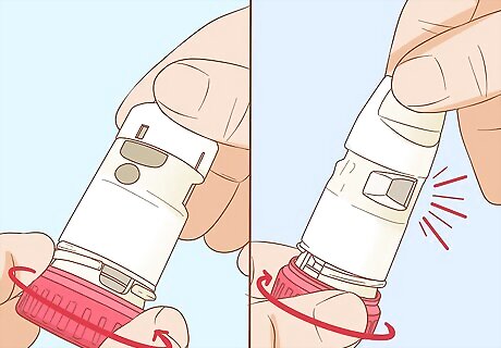 Turn the colored base to the right and back again until you hear it click. When you hear the click you will know that there is a new dose loaded in the inhaler. Place the inhaler on a flat surface while you load the dose to ensure it stays upright and stable. Your inhaler will also have a small window that shows you how many doses are remaining. Normally the last 20 doses will appear in red and you will know it is time to refill your prescription soon.