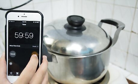 Simmer the ingredients on the stove over high heat for 1 hour. The pot should remain at a rapid simmer. If foam collects at the top of the water during this first hour, skim it off with a slotted spoon. If the water gets low, add more. Don't add so much water that the bones are floating. This will lead to a watered-down flavor. Add just enough water to keep the bones covered.