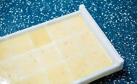 Freeze the bone broth in ice cube trays to add flavor to recipes. Simply pour the bone broth into the individual wells of an ice cube tray and place the tray in the freezer. Once the cubes are fully frozen, remove the cubes from the tray and place them in a resealable plastic bag or container to continue to store for up to 1 year. Each well will hold about 2 tablespoons (30 mL) of liquid. Use the cubes as needed for cooking or to add flavor to recipes. Alternatively, use a muffin tray instead of ice cube trays. It allows for the same concept of pre-portioned broth that can be removed and stored in a plastic bag, the portions will just be about ⁄2 cup (120 mL) instead.