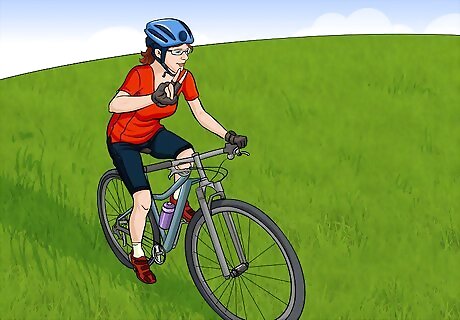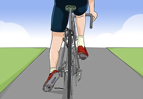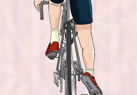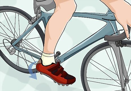 Hold your clipped-in foot at 45 degrees. Once you clip your first foot in, move the pedal so that it’s ready to drive downward and propel your bike forward. Giving a hard initial pedal with this foot will help you build momentum before you clip your second foot in. It’s easier to clip in the second foot when you are already moving rather than trying to balance the bike while you clip in.