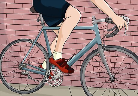 Lean against a wall, table, or fence to practice clipping in. Keeping your balance when you clip in is one of the hardest parts to learn. If you practice by balancing against something stable, you can get the motion down. While holding the wall, clip in both feet, pedal backwards to stay in place, and then unclip both feet. When you are ready to ride, you can still begin to clip in by leaning on the wall for support. If you do this on your first few trips out on the road, you’ll get the hang of it enough that you won’t need the wall anymore.