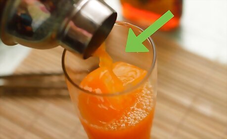 Juice the carrots. Clean the carrots and remove their tops. Peel the carrots. Cut any long or wide carrots in half. Feed them into a juicer. Six to eight medium carrots will make one glass of juice. Add apple, orange or ginger for extra taste.