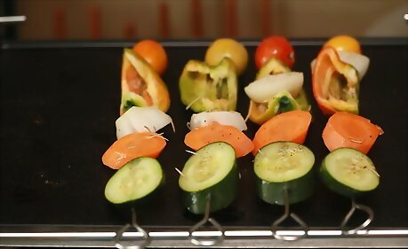 Grill carrots. Cut carrots on the bias in 3/4" slices. Toss them in olive oil and honey, and season them with salt and pepper to taste. Cook them on the grill at maximum heat for 45-60 minutes or until completely softened, flipping them several times. Another option for a glaze is to combine soy sauce, honey, brown sugar, and crushed red pepper. Mince ginger and garlic, combining both with the glaze. Place the carrot chunks near the coals but not directly over them.