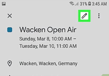 Edit an event. Click or tap an event to view its details. If you want to make any changes, click or tap the pencil icon at the top to open the event in editing mode, making your changes, and then select Save.