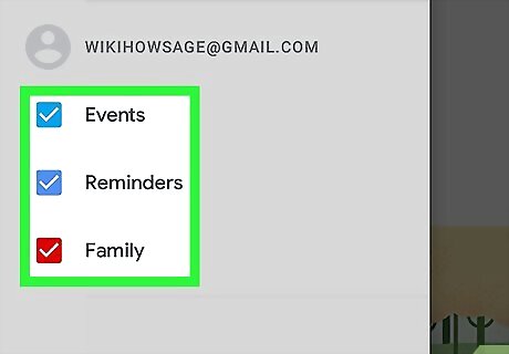 Control which calendars display by default. Google Calendar lets you manage multiple calendars within a single account, which is great for managing work appointments, personal events, holidays, and additional tasks. Click or tap the three-line menu at the top-left corner to expand the menu. If you're using a computer, you only have to do this if you don't already see a list of calendars in the left panel. Use the checkboxes next to each calendar name to make a calendar visible. If you're just getting started you'll only see a few options, including Availability, Reminders, and sometimes some holiday options.