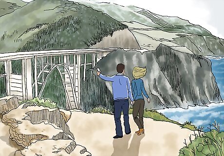 Drive along the Big Sur coast and stop to snap a photo at Bixby Bridge. Drive along Highway 1 for breathtaking views of the California coast. Pull off at one of several turn-offs near Bixby Bridge to take photos and admire the bridge, which overlooks a steep canyon carved by Bixby Creek.