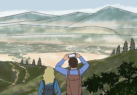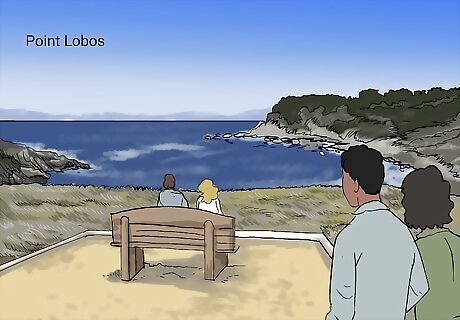 Try out hiking trails in some of the major Big Sur state parks. Big Sur is a long stretch of coastline, and there are multiple state parks contained within it. This means that there are hikes for people of all experience levels. Julia Pfeiffer Burns State Park: Pfeiffer is a Big Sur favorite. It is home to the wallpaper-worthy McWay Falls and several self-guided nature trails. Andrew Molera State Park: Andrew Molera has beach access and many miles of coastal, more challenging hiking trails. Garrapata State Park: Garrapata tends to be less populated than the other Big Sur parks and is only a short drive from Carmel. If you visit this park during the winter, keep your eye out for migrating whales along the coast.