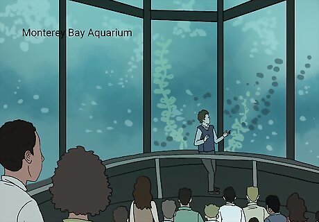 Enjoy the exhibits of the Monterey Bay Aquarium. Purchase tickets online or in-person for access into the Monterey Bay Aquarium, a world-class aquarium and marine research center. The Aquarium features several permanent exhibits, such as the Open Sea and the Kelp Forest, that showcase amazing animals found just offshore in the Bay. It is open every day of the year (except Christmas Day, December 25th) from 9:30 AM - 6 PM. The Aquarium is a great destination for all ages. There are several touch pool areas where children can meet local sea creatures with the help of an Aquarium volunteer. At each major exhibit, you can also watch Aquarium staff feed the animals at specified times. Check their website for more details.