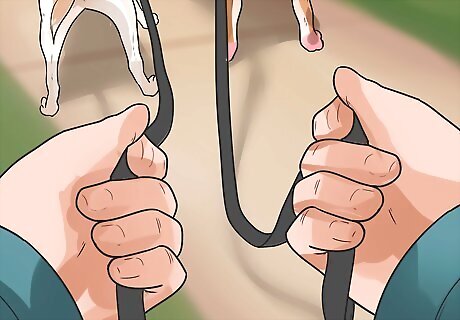 Hold the leashes in a way that feels comfortable for you. There is no strict right or wrong answer when it comes to holding two leashes during a walk. A lot depends on the size of your dogs, and your sense of control. Some people feel like they have adequate control holding the leashes in a single hand. However, with bigger and stronger dogs, you may feel better holding one leash in either hand. If one dog is bigger or stronger, you may want to hold his leash in your dominant hand.