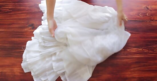 Put the petticoat in the dryer for a couple minutes to fluff it up once it's dry. If your petticoat dries and is a little rigid or flat, place it in the dryer on a low heat setting. Only let it stay in the dryer for a couple minutes so it doesn’t get too hot. Since you're only putting the petticoat in the dryer for a minute or two, it's not necessary to add a dryer sheet.
