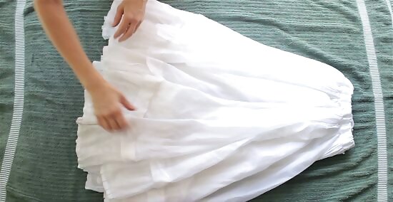 Lay the petticoat out flat on a towel and let it dry completely. Spread a clean towel out on a flat surface and lay the petticoat on top of it. Spread the petticoat out too so that it’s at its full volume, helping it dry faster. Avoid hanging the petticoat to dry because this can weigh it down too much.