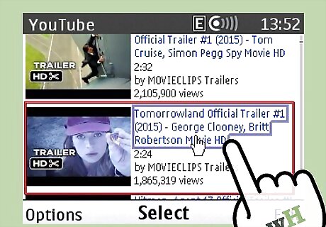 Choose a video. You should now see a list of videos that match your search terms. Select a video from a list of search results. Click the title of the video and the video should begin to load. Enjoy your video! It bears mentioning that you may want to keep your expectations for your video-viewing experience in check — though C3 series phones can play a variety of video formats, they only have a 320 × 240 pixel display and a limited amount of internal memory — thus, video quality and loading speeds are unlikely to be as good as they are on newer mobile devices.