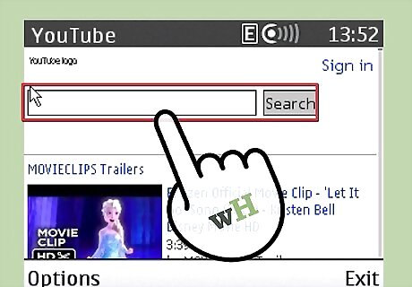Search for a video. Select the search bar of the mobile YouTube page, then use the C3's keyboard to type in the title of a video you want to watch or enter keywords for videos you’re interested in viewing. For example, if you want to watch music videos, type in "music videos". Click the phone's "enter" button or select the search button in the browser window to continue.