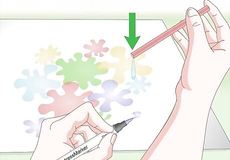 Pick up the exposed ink with a wet watercolor brush. Wet the watercolor brush of your choice and use it to pick up the exposed ink by rolling it on your patch of marker ink. The amount of ink you'll want to pick up will vary according to how saturated you want your colors to be.