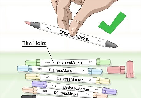 Purchase your distress markers. For this method, you'll need to purchase a set of distress markers in the colors that you'd like to use. A full set of distress markers can be expensive, so you might want to start with a smaller set of markers in colors that you'll use the most. The most popular brand of distress markers is Tim Holtz's line, but you can use any water-based markers, including Zig Art, Graphic Twin, and Tombow ABT makers.