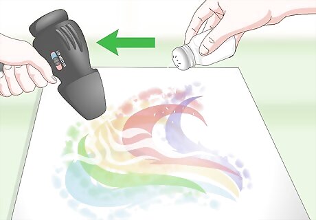 Add salt. Once you've applied the distress marker ink and water to your paper with the technique of your choice, sprinkle some salt on the color. Then use a heat gun to apply heat. This will cause the colors to pool around the salt, making the pigment more intense but still preserving the original color under the salt.