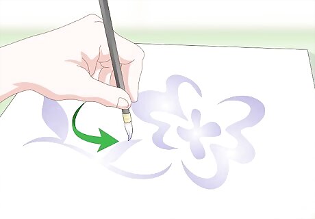 Color directly on your paper. Using either the fine or brush tip of your distress marker, color on your paper where you want that particular color to go. You'll want to color a little more darkly than you normally would since you'll be diluting the color by adding water to it. Unless you are looking for a very defined border with the color you're using, you should favor the brush, rather than fine-tip, end of your marker. The fine tip can scratch the paper, which prevents your color from being applied evenly.