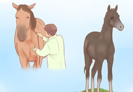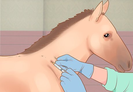 Get your foals vaccinated when they are 3 months old. Stressed foals can be prone to many serious diseases, such as tetanus, encephalomyelitis, and West Nile virus. To prevent your foal from contracting any of these, talk to your vet about getting your foal vaccinated once it is around 3 months old. Get your foal vaccinated again after 3 or 4 weeks to make sure that the vaccines work effectively. If your foal shares a stable or interacts with many other horses, you may need to get them vaccinated against influenza, rhinopneumonitis and strangles. Always consult with your vet when choosing the right vaccines to give to your foals and the right time to administer them.
