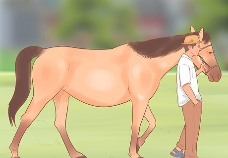 Give the foal a playmate or nanny. Once the foal has calmed down, bring in a playmate or older nanny horse that it can spend time with to keep it company. This will help distract the foal from the weaning process and allow it to socialize, keeping the foal calmer while it’s weaned. An older nanny horse, such as a gentle gelding, will keep the foal calm and help teach it how to act properly. For example, in the case of a storm, the foal can watch how the nanny reacts and stay close to it to help keep calm. Horses are social animals that need company to be happy, especially while being weaned. Make sure your foal has another animal it can play with to remain happy.