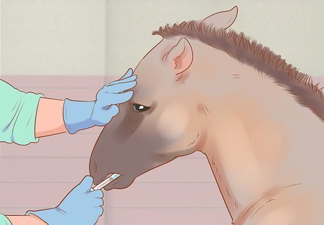 Deworm your foals after 2 months. The stress on your foal brought about when they are weaned will increase the chances of them becoming ill. To lower these chances as much as possible, start your foal on a “white” dewormer when it reaches 2 months of age. Continue deworming it every 60 days to keep it healthy. Talk to your vet about finding the right deworming medication for your foal. If you don’t properly deworm your foal, roundworms may grow and move through its intestinal wall, liver, and even its lungs. This will make your foal more prone to pneumonia and other diseases.