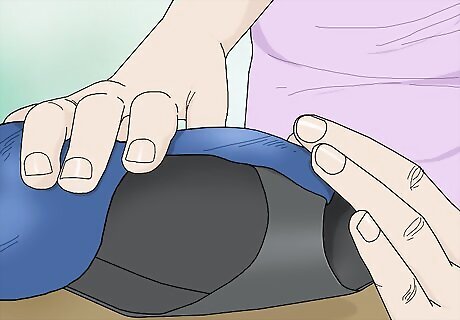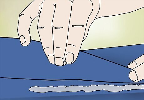 Wrap a strip of denim around the top of your foot and glue it to the hem. Cut a leftover piece of your jeans that’s wide enough to reach from your ankle to your toe and long enough to wrap around your entire foot. Lay the piece centered across the top of your foot. Tuck 1 edge just underneath the hem of the pant leg, and glue them together all the way around.