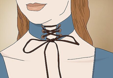 Dress up your denim boots with a statement piece of jewelry. A statement piece of jewelry can take your outfit from relaxed to chic. Put on sparkly pair of chandelier earrings, a classic gold watch, or a long pendant necklace to go for a classier vibe with your denim boots.