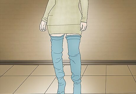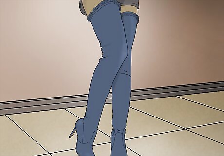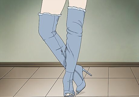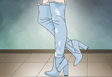 Get a thigh-high pair for a trendy look. The most commonly worn type of denim boots is most likely thigh-high. These combine both vintage and modern styles, and so they appear interesting and different to many. Go with this type if you’re wanting to incorporate trendy celebrity influences into your personal style.
