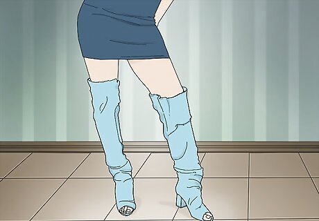 Show off your legs with a tight-fitting pair. If the slouchy vibe doesn’t really match who you are, buy boots that are made of a stretchy denim material instead. This type of fit is also popular and can help to accentuate the curvature of your legs.