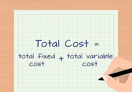 Calculate the total cost. This is the total amount of money it costs to produce a product, equal to the total fixed cost plus the total variable cost. Every element of production must be factored into the total cost, including labor, commissions, utilities, marketing, administrative costs, office supplies, shipping and handling, materials, interest and any other cost that pertains to the specific product. It is the sum of total fixed cost and total variable cost.