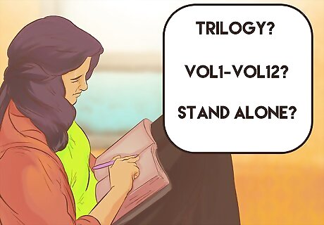 Consider the type of series you will write. You will have to decide whether you are interested in writing one large story broken into several books, such as the Harry Potter series or a group of stand-alone books featuring the same characters, such as Agatha Christie’s Hercule Poirot mysteries. Making this decision will help you figure out whether you will plot each book separately, or whether you will try to have an overarching storyline between the books. Did you just finish a novel and don’t want to say goodbye your main characters? Or, have you developed a fantastic plot that is so wide-ranging it needs to be told over several installments? The former motivation could lead to a long-running series, like a group of mystery novels, while the latter could lead to a trilogy. You will also need to figure out whether you will have an ensemble cast that appears throughout the series, or whether you will primarily have a main character who meets new characters in each book.