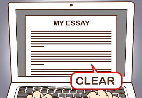 Write as clearly as possible. If you’re writing quickly, it will simplify the process to write easy sentences without difficult grammatical structures. This also makes it less likely that you’ll improperly use convoluted jargon. Avoid "fat" language when you write. Text that includes long prepositional phrases, passive verbs, and paragraphs that don't further your argument waste time that you could spend writing or revising your essay.