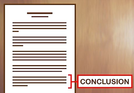 Write the essay conclusion. Like the introduction, the conclusion does exactly what the word implies: it brings your essay to an end. It provides a summary of your basic argument and should leave the reader with a strong impression of your work. The essay conclusion should also be relatively short. Aim for the conclusion to be 5-10% of your essay’s total length. Aim to do more in your conclusion than just restate your thesis and the evidence you used. You could acknowledge the limitations of your argument, suggest a direction for future research, or expand the relevance of your topic to a wider field. Just as you drew in reader with good introduction, end your conclusion with a sentence that make a lasting impression on your reader.