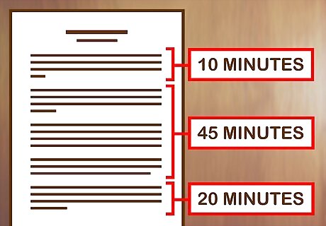 Time your writing strategically. If you must answer more than one essay question during a time period, make sure that you leave yourself enough time to write all of them. It’s also a good idea to check the grade values for your essay questions, too. For example, you wouldn’t want to spend the same amount of time and effort on a 3-paragraph essay question worth 20% as you would a 2-page essay question worth 60%. If you see a question that you feel will be more difficult for you, it could be a good idea to tackle it first. This will get the hard stuff out of the way while you’re still fresh.