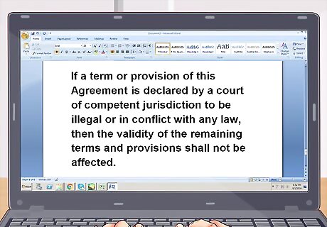 Add a severability clause. Generally, if one part of the contract were to be found illegal, then the entire contract could be voided. To prevent this, include a severability clause. Sample language could be: “If a term or provision of this Agreement is declared by a court of competent jurisdiction to be illegal or in conflict with any law, then the validity of the remaining terms and provisions shall not be affected.”